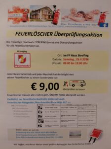 | Am 24.03.2026 fand bei der FF Streifing eine Brandübung statt. Übungsobjekt war ein in Brand geratenes Gartenhaus mit Keller. Es wurde eine Person vermisst und ein Flurbrand auf dem angrenzenden Feld angenommen. Die vermisste Person wurde von unserem Atemschutztrupp im Keller gefunden und anschließend gerettet.Der Flurbrand und der Brand im Gartenhaus wurden erfolgreich gelöscht. |