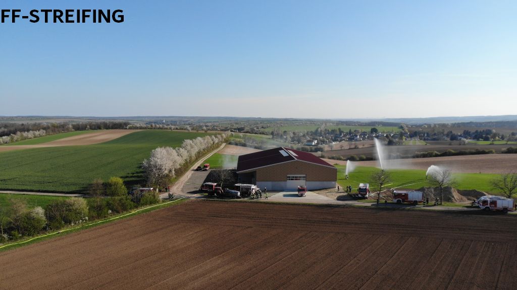 | Am 11.04.2026 fand die Unterabschnittsübung in unserem Einsatzgebiet statt. Übungsannahme war eine in Brand geratene landwirtschaftliche Halle. In der Halle befanden sich mehrere vermisste Personen und es ist dort kein Löschwasser vorhanden. |